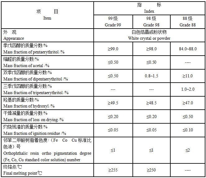 (1)產(chǎn)品用途與工業(yè)用季戊四醇相同外,98級、88級特級品季戊四醇主要應(yīng)用于對雙季戊四醇和縮醛含量有特殊要求的產(chǎn)品。99級特級品季戊四醇主要應(yīng)用于對單季戊四醇和縮醛含量有特殊要求的產(chǎn)品,如抗氧劑。